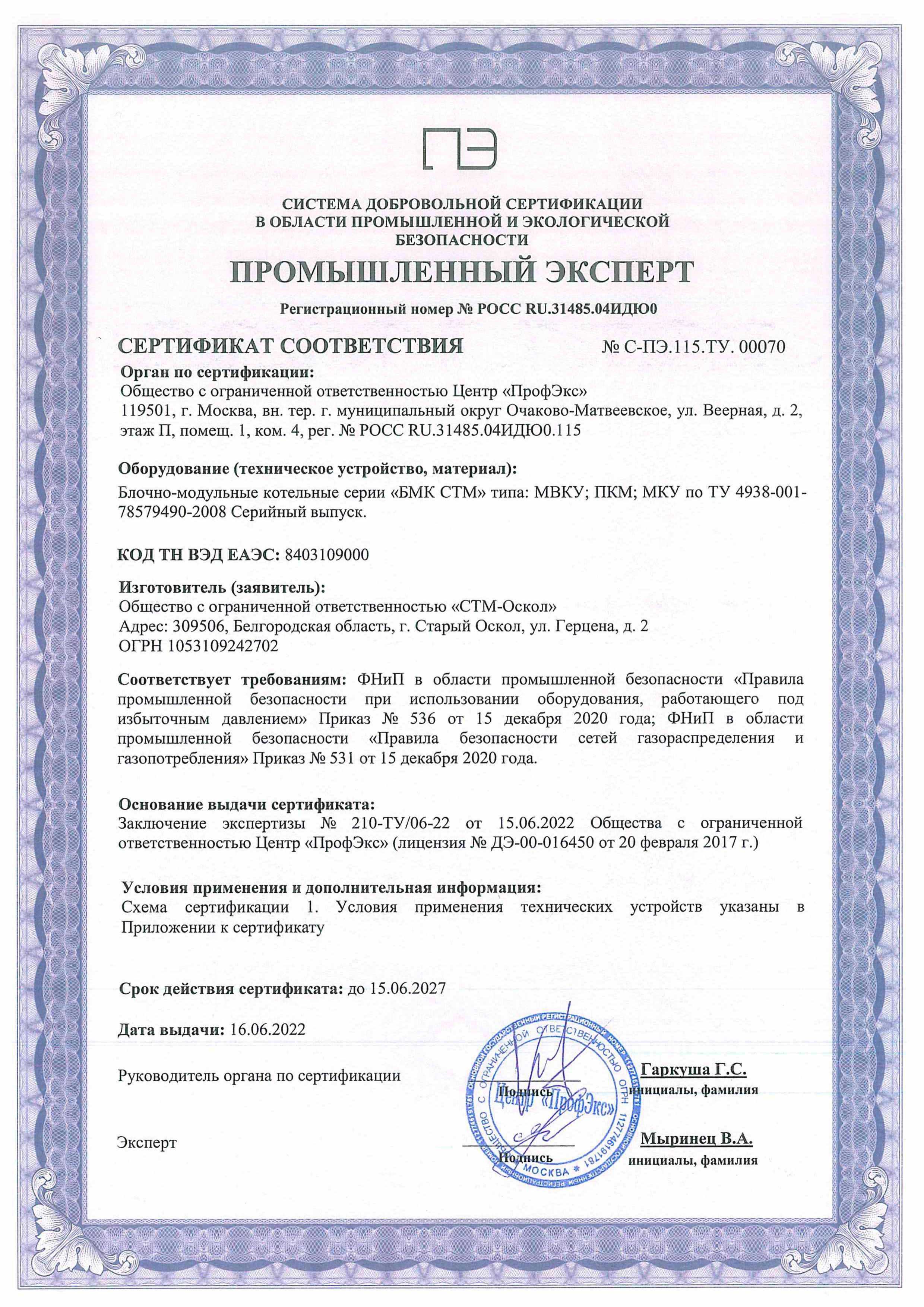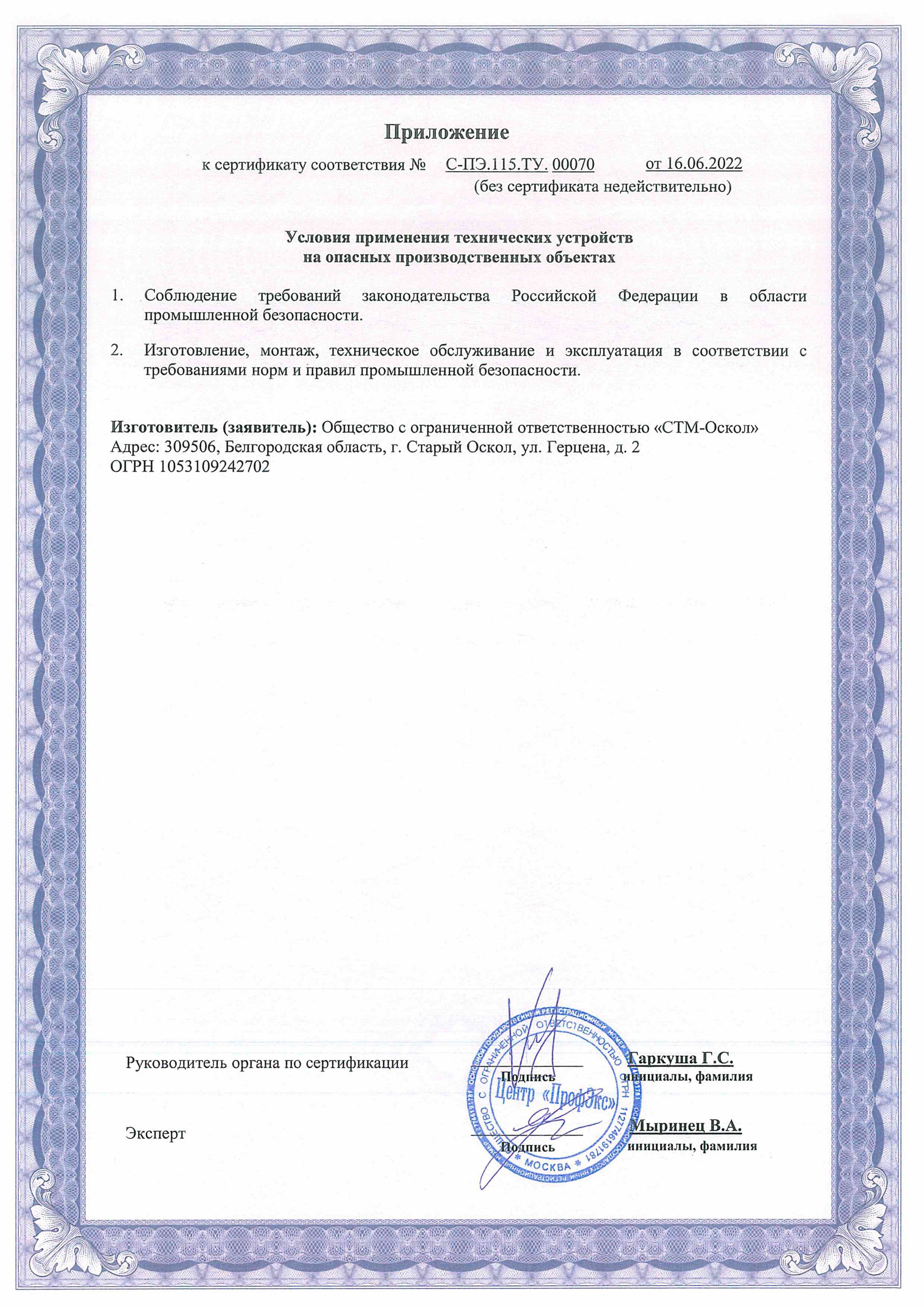 Сертификат Промбезопасности