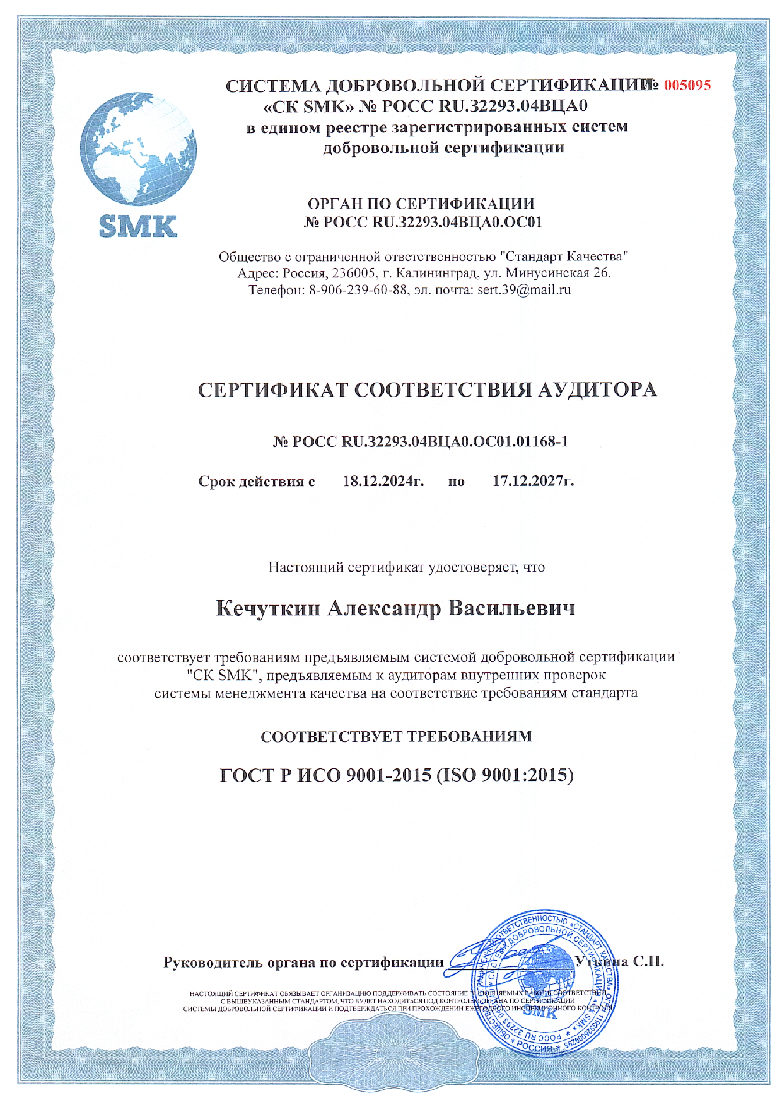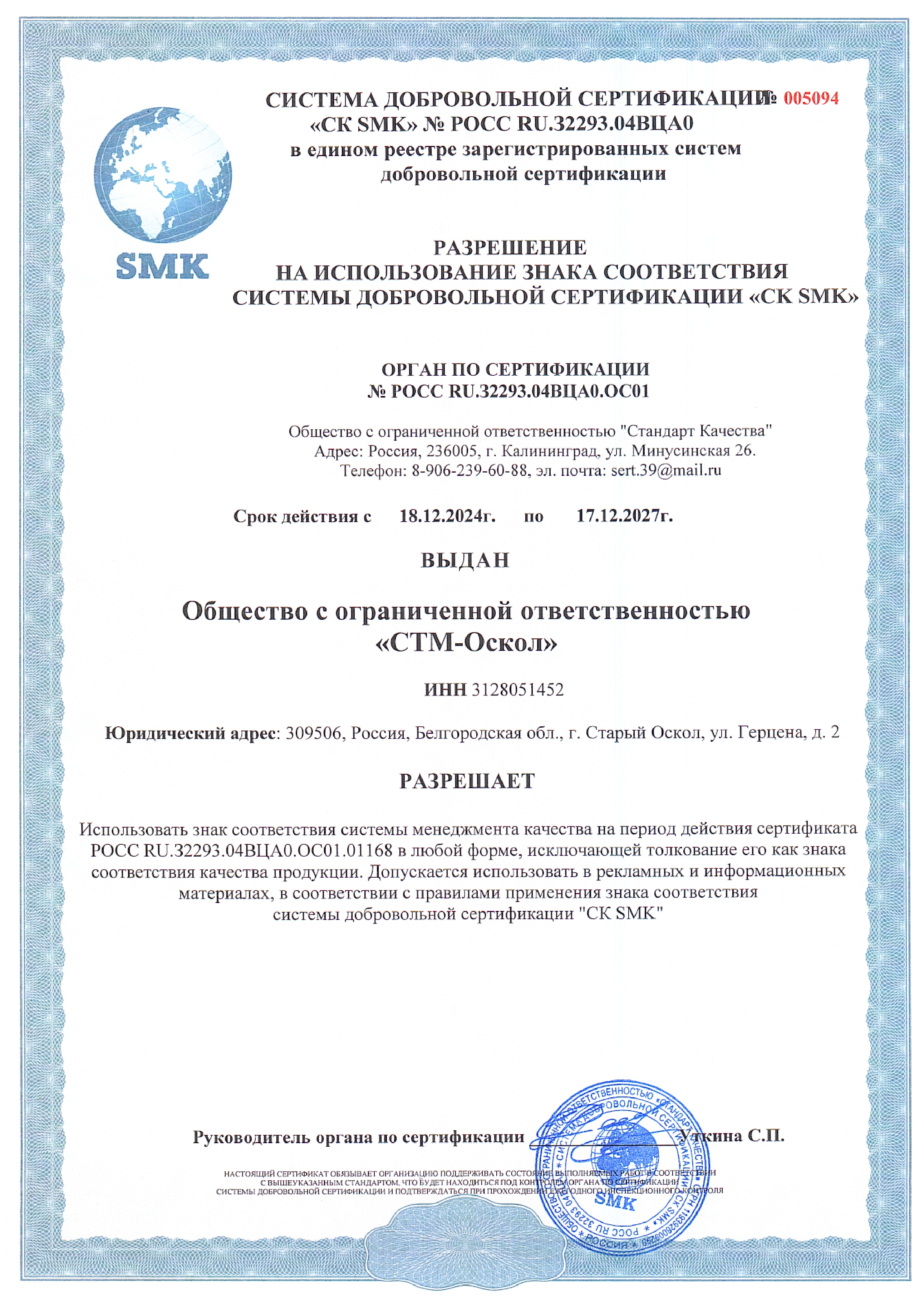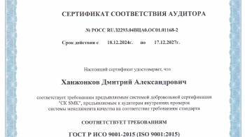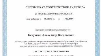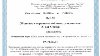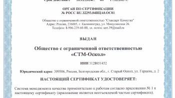 Сертификат ИСО ООО Завод «Современные тепловые машины-Оскол»